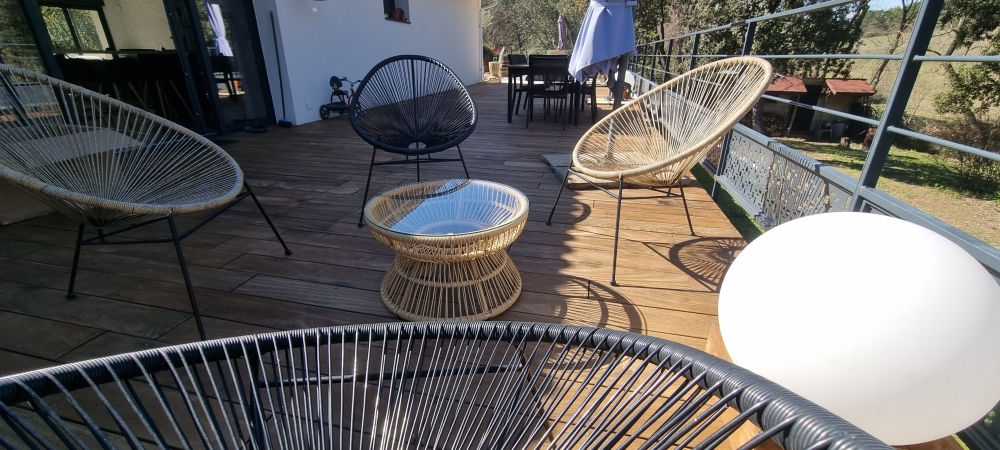 Notre Société RJ Aménagements Extérieurs à réalisé l'entretien de cette Terrasse en bois exotique que nous avons réalisé en 2020 sur la commune de Saint-Clément-de-Rivière