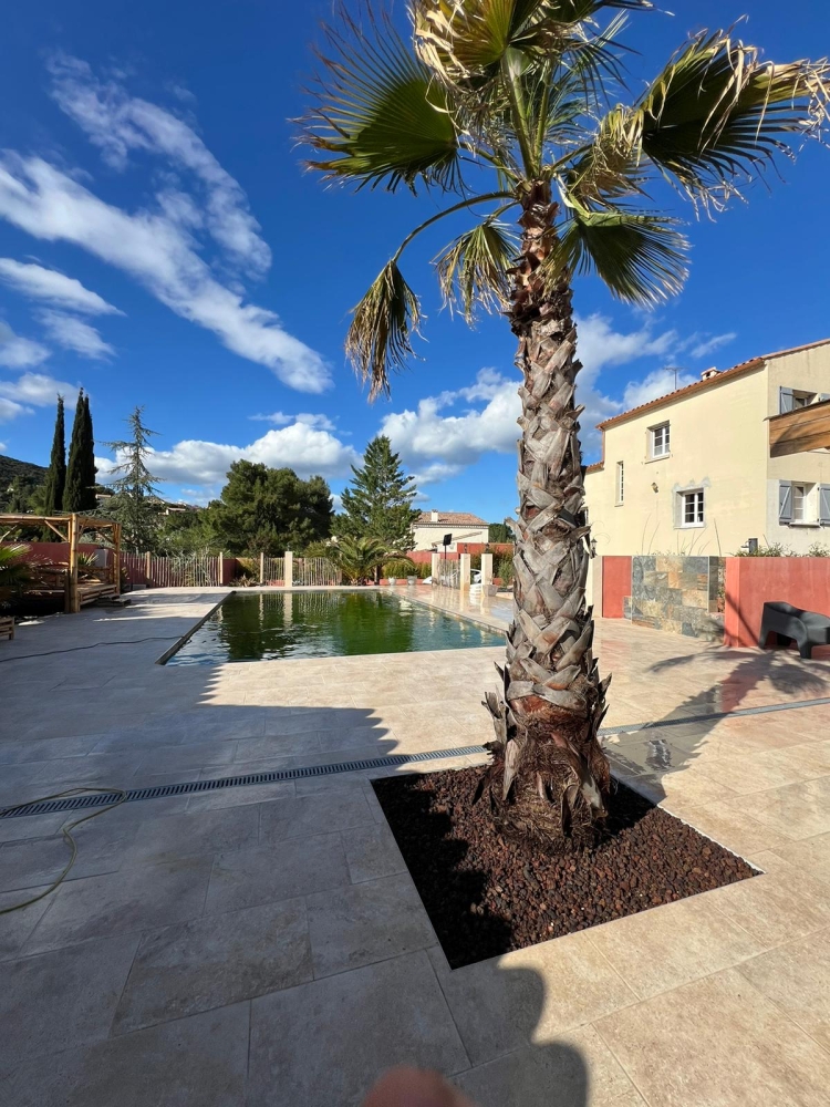 La Société à réalisée la Plantation de ce Palmiers par grutage sur la commune de Vailhauques