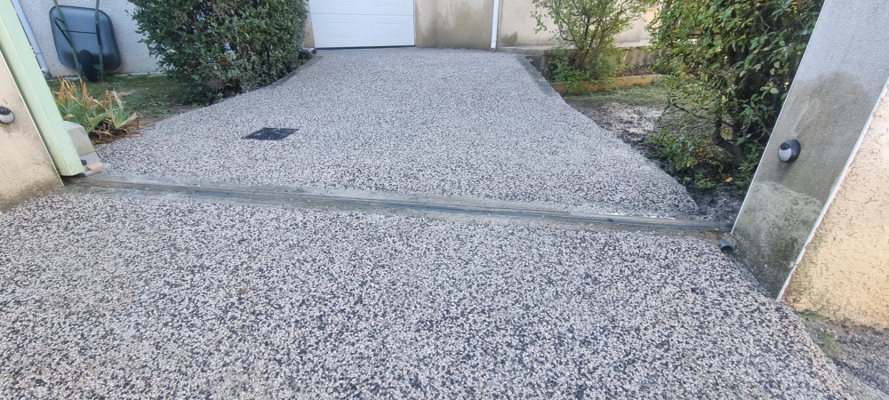 La Société RJ Amenagements Exterieurs à réalisée une allée de garage en béton désactivé sur la commune de Castries