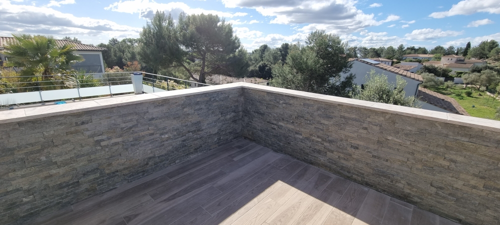 La Société RJ Aménagements Extérieurs à rénover ces murs en y montant du parement en resine, pour un résultat soigné nous y avons rajouté des couvertines en travertin gris silver pour protéger les murs. Chantier Réalisé sur la commune de Saint-Bauzille-de-Montmel