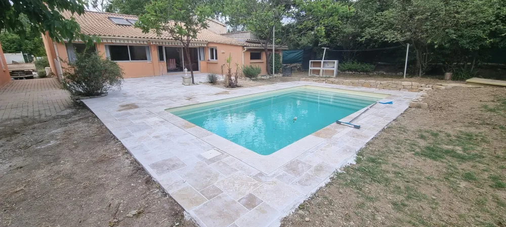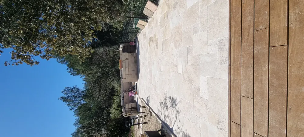 RJ Aménagements Extérieurs, pisciniste à Saint-Clément-de-Rivière, vous propose divers services dont la rénovation de travertin de piscine. Cette opération vise à restaurer et à raviver la beauté de la surface en travertin qui recouvre le pourtour de la piscine. Pour cela, notre équipe peut être amenée à réaliser différentes tâches :