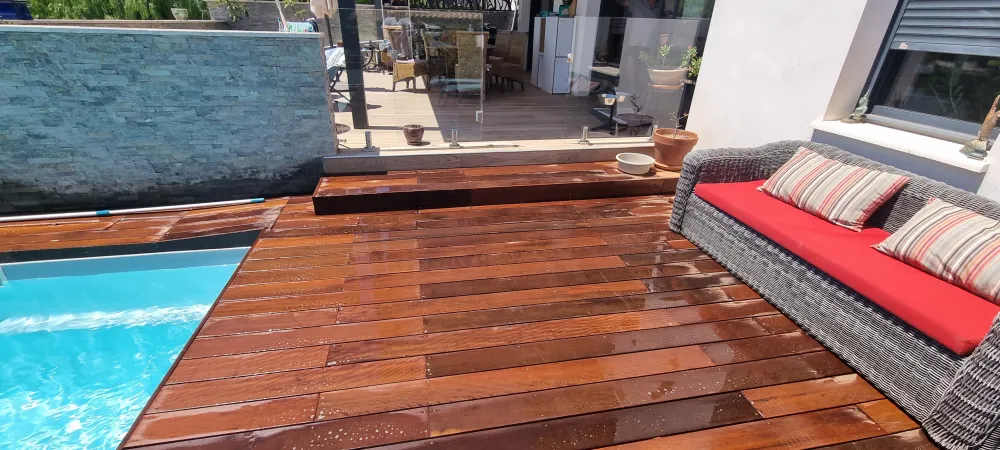 RJ Aménagements Extérieurs, terrassier à Saint-Clément-de-Rivière, est à votre disposition si vous recherchez un professionnel pour réaliser une terrasse en bois. Pour une installation durable et esthétique, notre équipe vous conseille sur le choix du type de bois adapté à votre projet en prenant compte des éléments suivants :